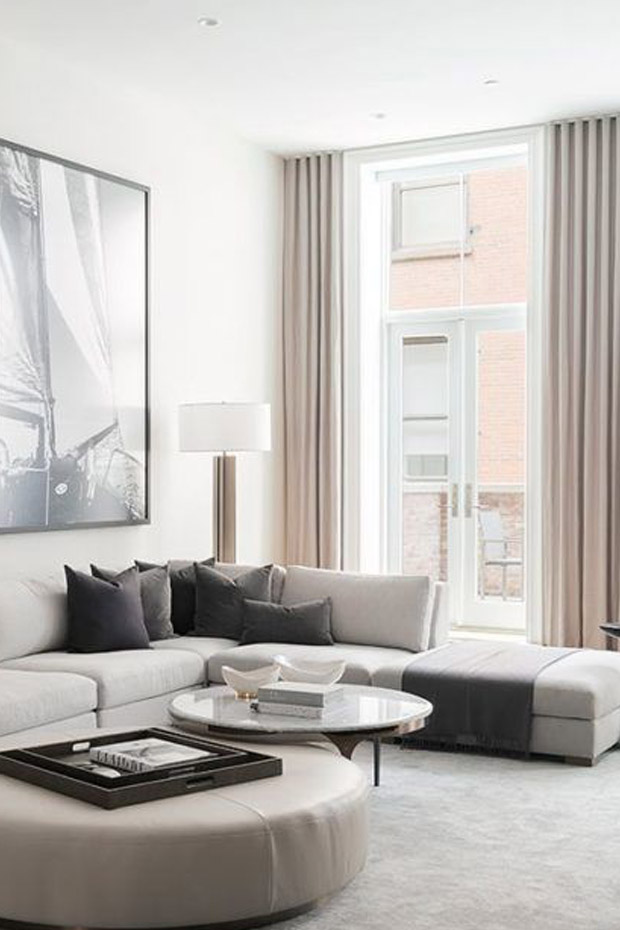Các món đồ nội thất phổ biến cho phòng khách như sofa, tủ đồ, kệ tivi, bàn trà,... nên được lựa chọn dựa trên phong cách thiết kế tổng thể của ngôi nhà. Sử dụng các đồ dùng có tông màu đen, xám hoặc nâu để giúp không gian thêm phần hiện đại hơn. Nếu diện tích phòng khách của bạn khá khiêm tốn, hãy cân nhắc sử dụng màu be, màu kem hoặc màu trắng để không khiến không gian bị chật chội, bí bách.