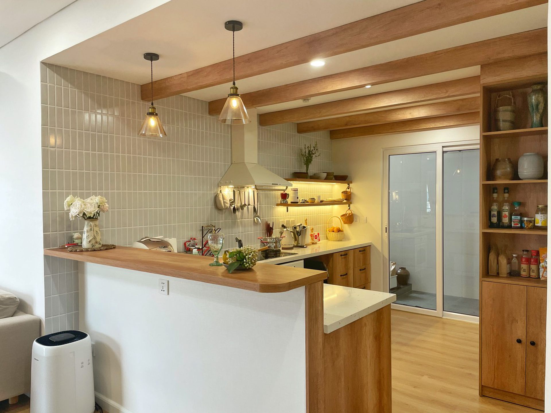 Bạn nghĩ phong cách Nhật Bản thường quá nghiêm túc, già dặn? Cùng tham khảo ngay mẫu thiết kế bếp và nội thất căn hộ với phong cách Nhật Bản đầy trẻ trung qua những nốt đan xen đầy tinh tế của màu gỗ trong căn phòng, vừa nhẹ nhàng một cách rất Nhật, lại vừa thật trẻ trung phù hợp với tổ ấm của đôi vợ chồng trẻ này nhé. (Cre pics: Căn hộ mang phong cách Nhật Bản trẻ trung tại Đống Đa )