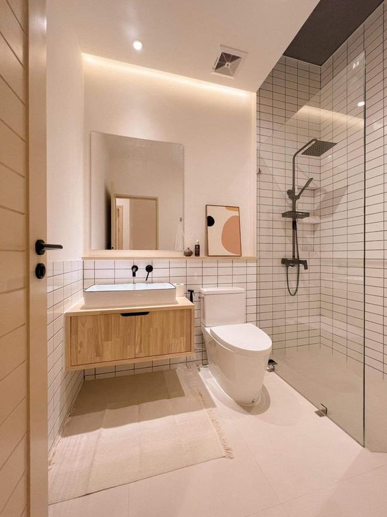 - Gạch ốp tường phòng tắm: thường sử dụng kích thước 30×60 cm hoặc 30×80