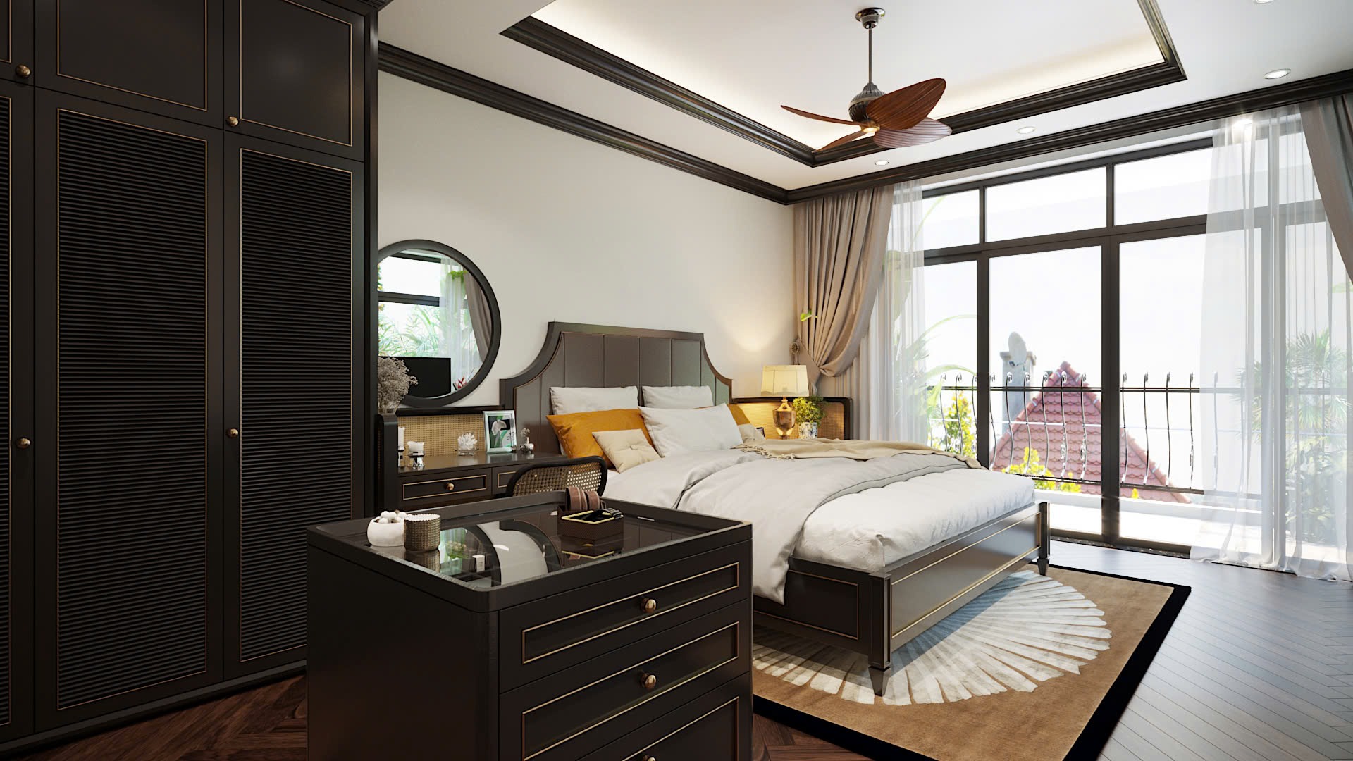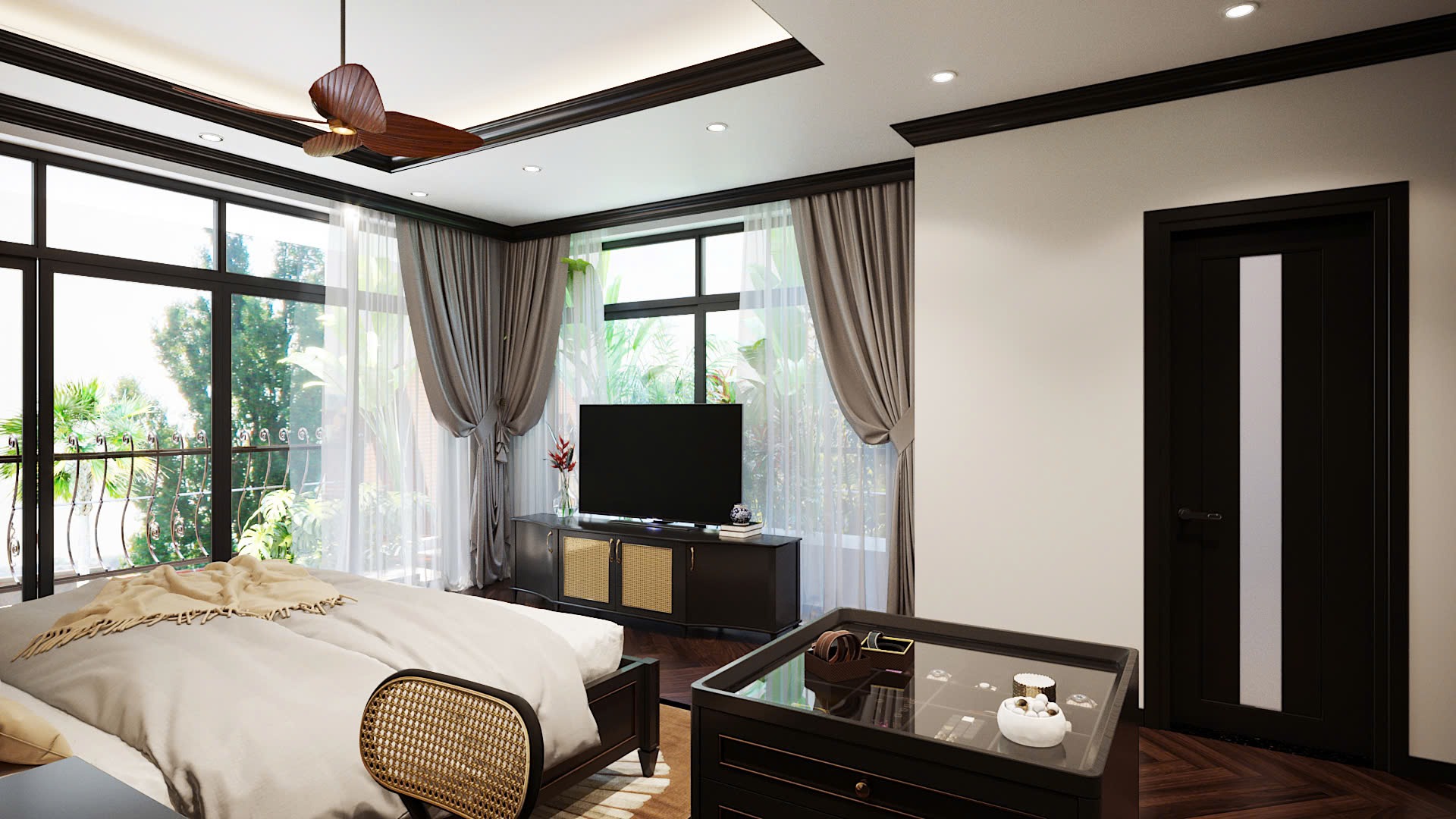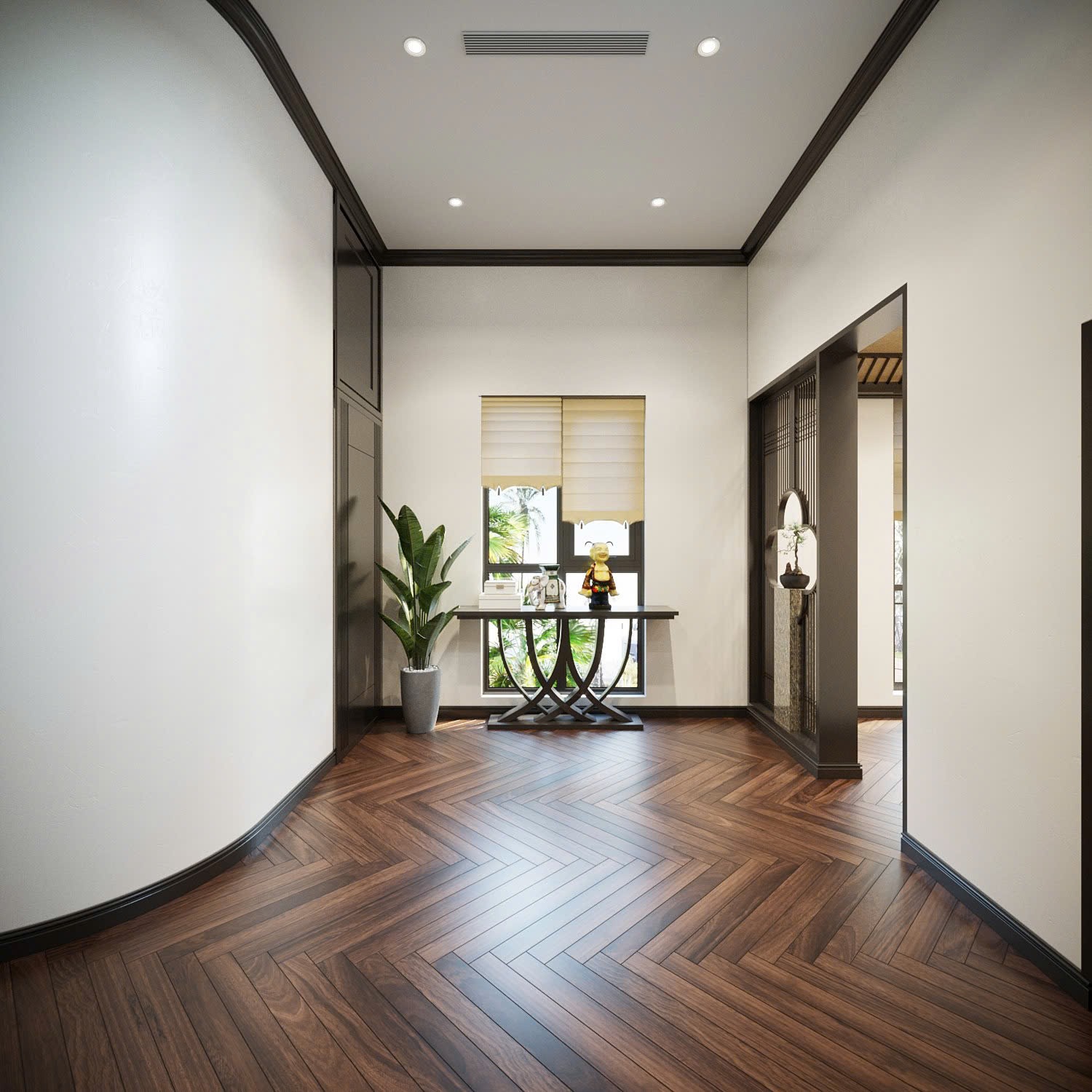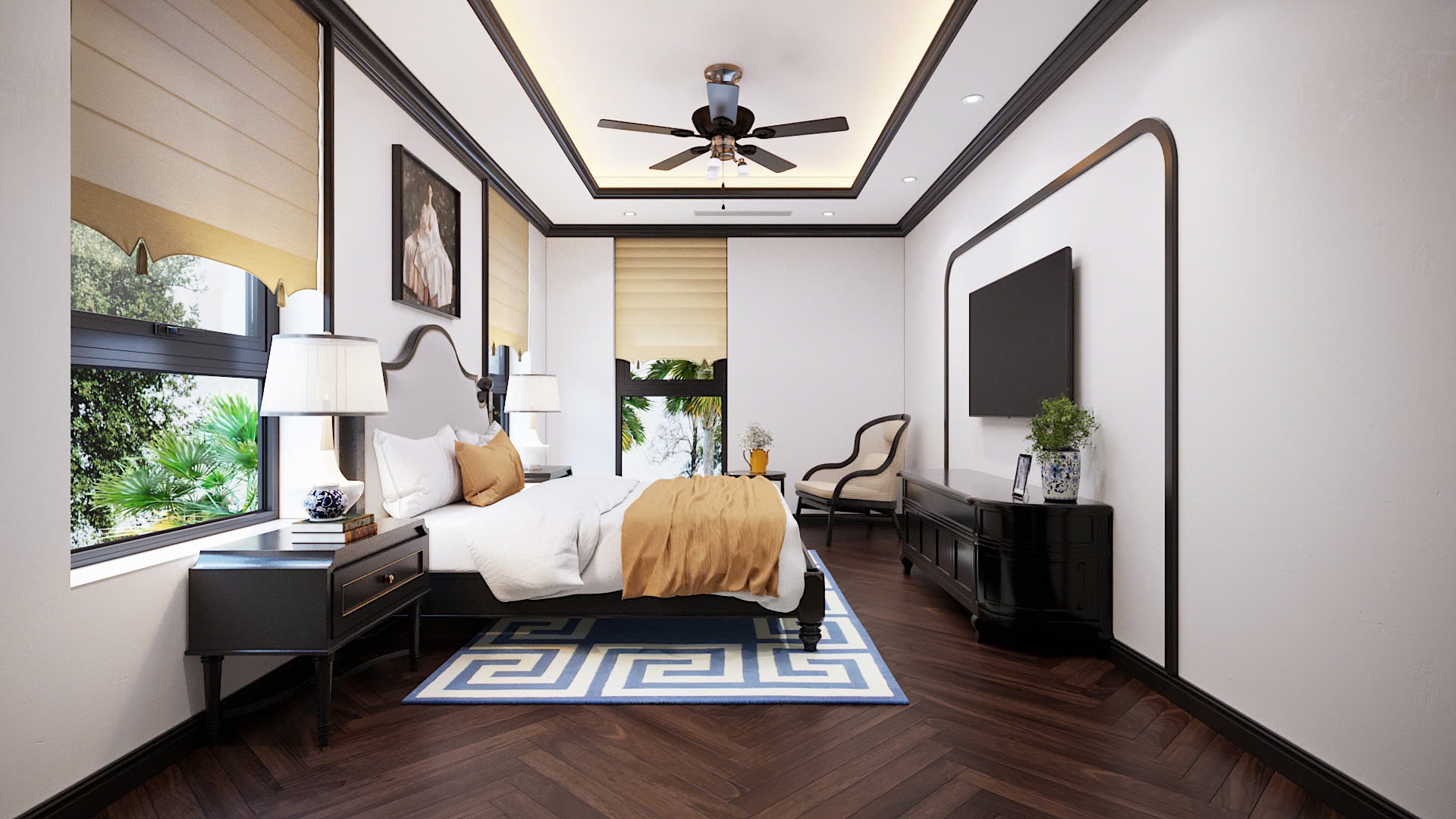 Khi thiết kế căn biệt thự đảo Ecopark theo phong cách này, các kiến trúc sư của Circle Home Design đã tỉ mỉ lựa chọn và phối hợp nhuần nhuyễn giữa các gam màu trung tính như vàng nhạt, kem, nâu pha trộn với các gam màu ấm nóng của xứ nhiệt đới như cam, đỏ… Họa tiết hoa mai, hoa sen và các vật dụng trang trí cùng không gian rộng mở gần gũi với thiên nhiên tạo nên tổng thể hài hòa về một ngôi nhà phảng phất nét cổ điển sang trọng nhưng vẫn năng động và tràn đầy sức sống.