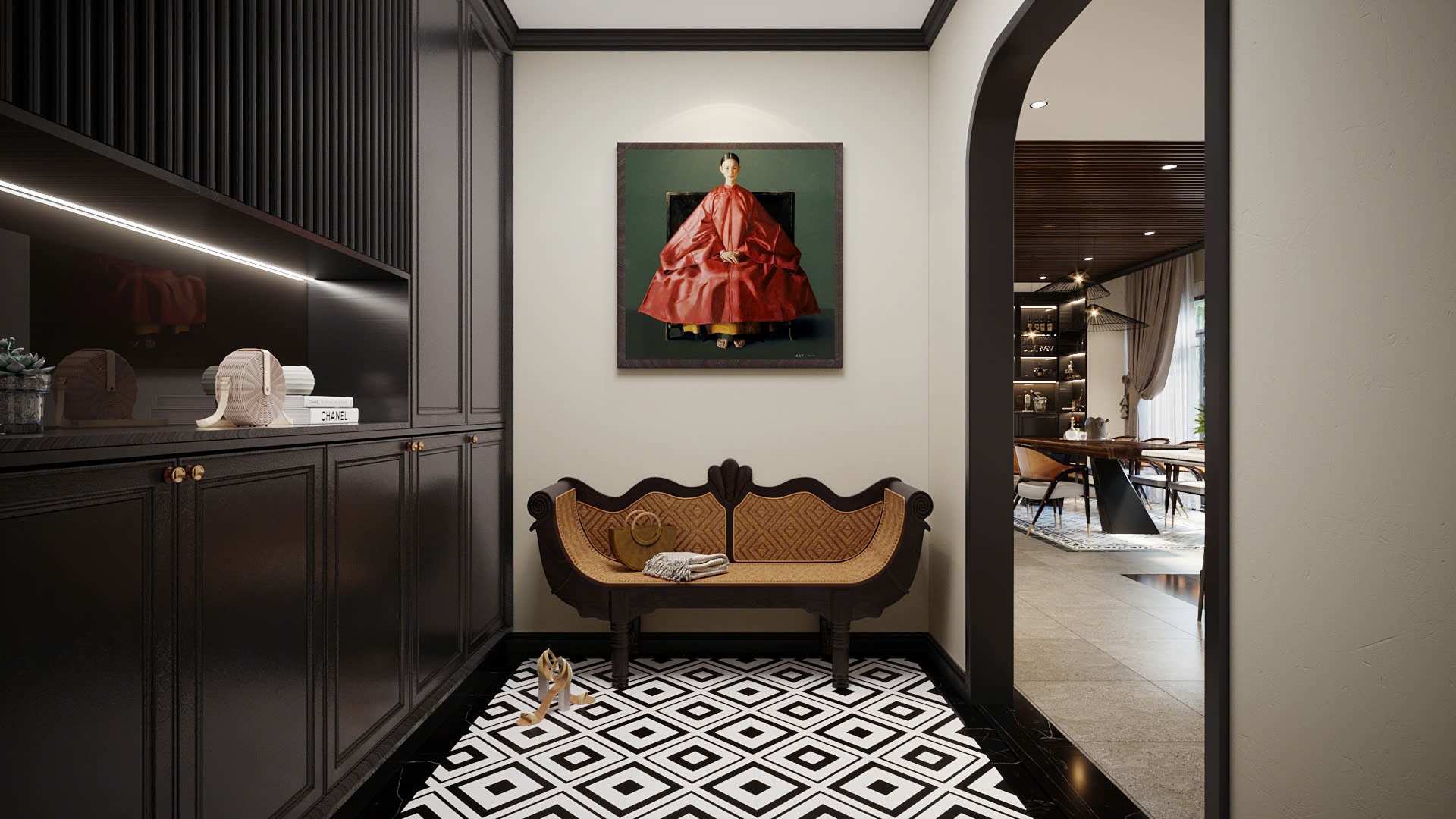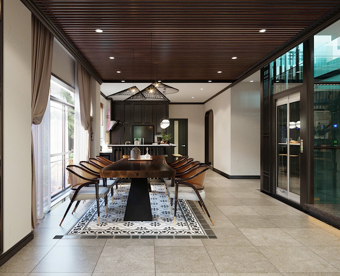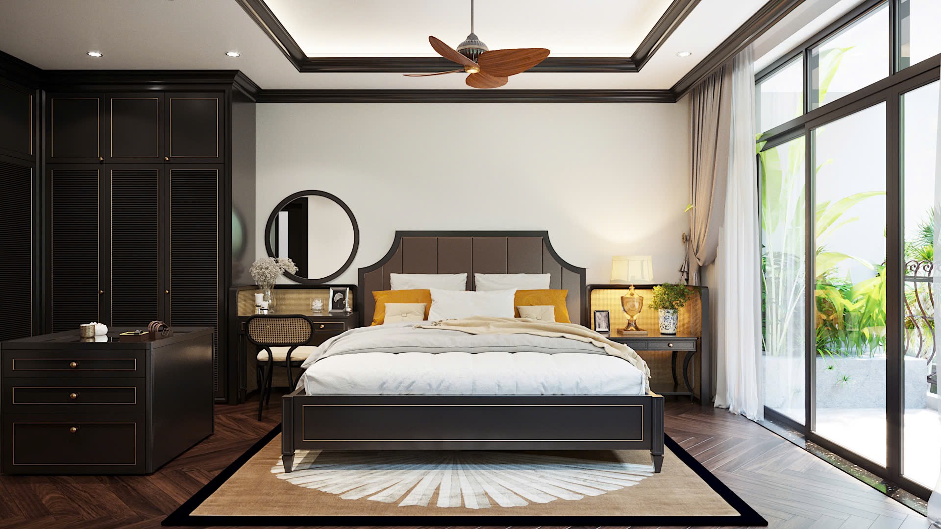 Khi thiết kế căn biệt thự đảo Ecopark theo phong cách này, các kiến trúc sư của Circle Home Design đã tỉ mỉ lựa chọn và phối hợp nhuần nhuyễn giữa các gam màu trung tính như vàng nhạt, kem, nâu pha trộn với các gam màu ấm nóng của xứ nhiệt đới như cam, đỏ… Họa tiết hoa mai, hoa sen và các vật dụng trang trí cùng không gian rộng mở gần gũi với thiên nhiên tạo nên tổng thể hài hòa về một ngôi nhà phảng phất nét cổ điển sang trọng nhưng vẫn năng động và tràn đầy sức sống.