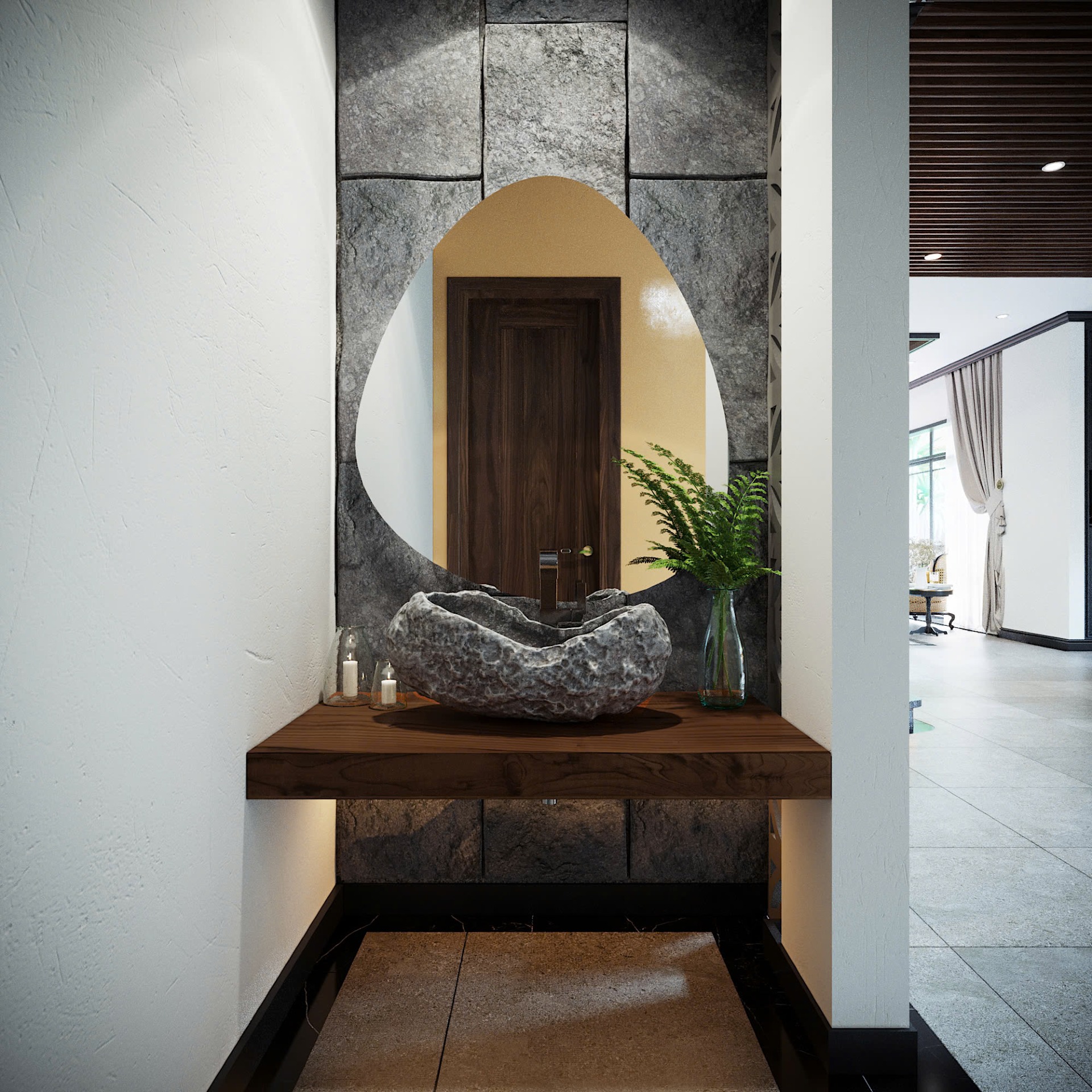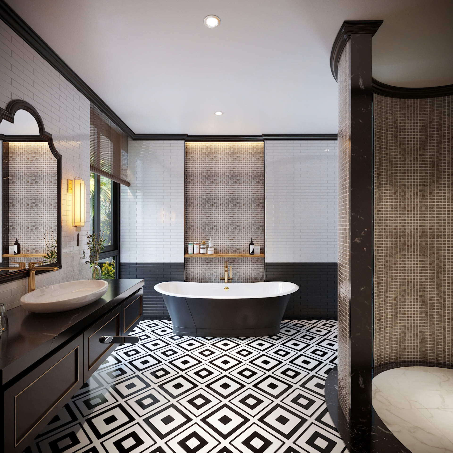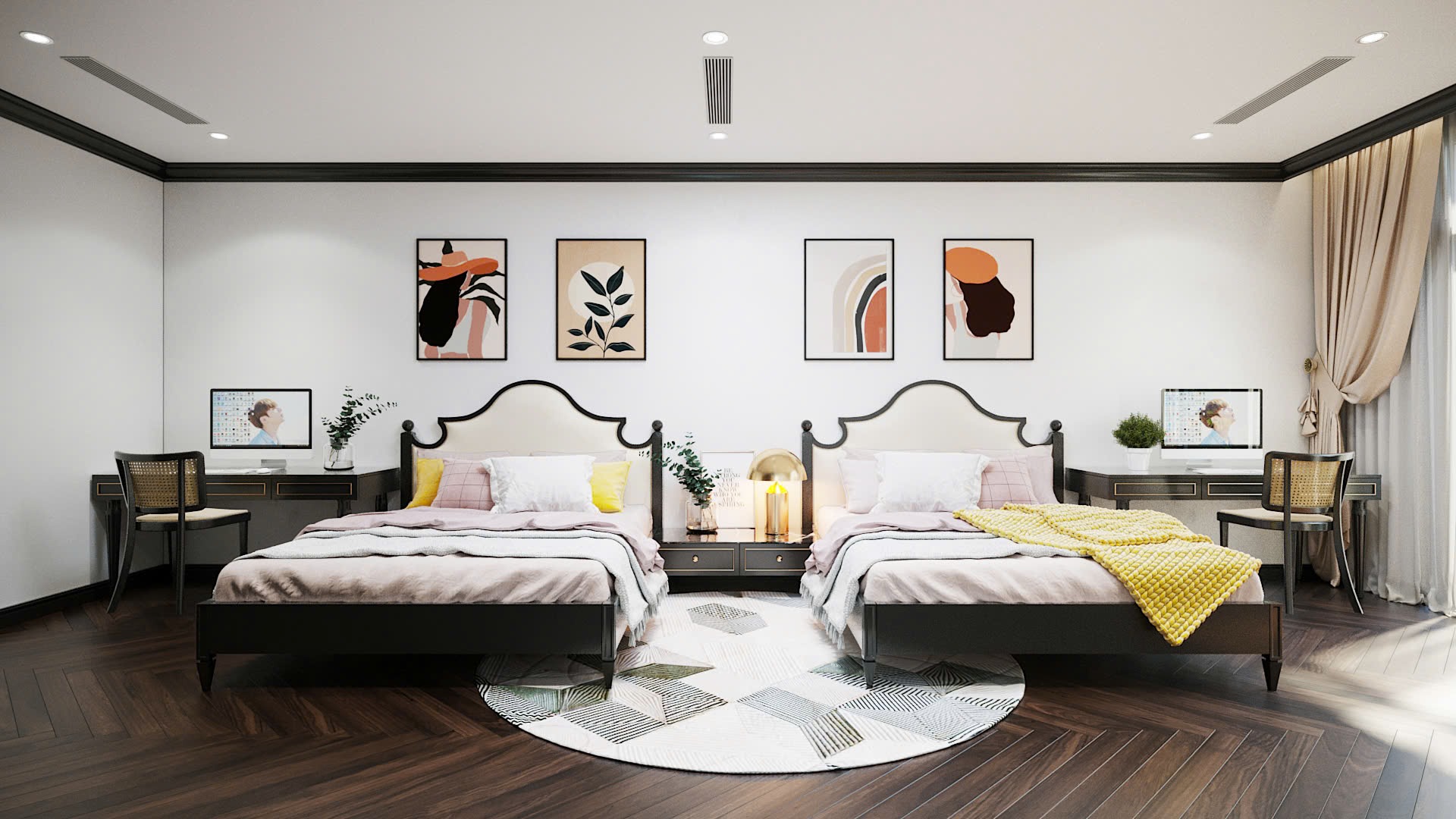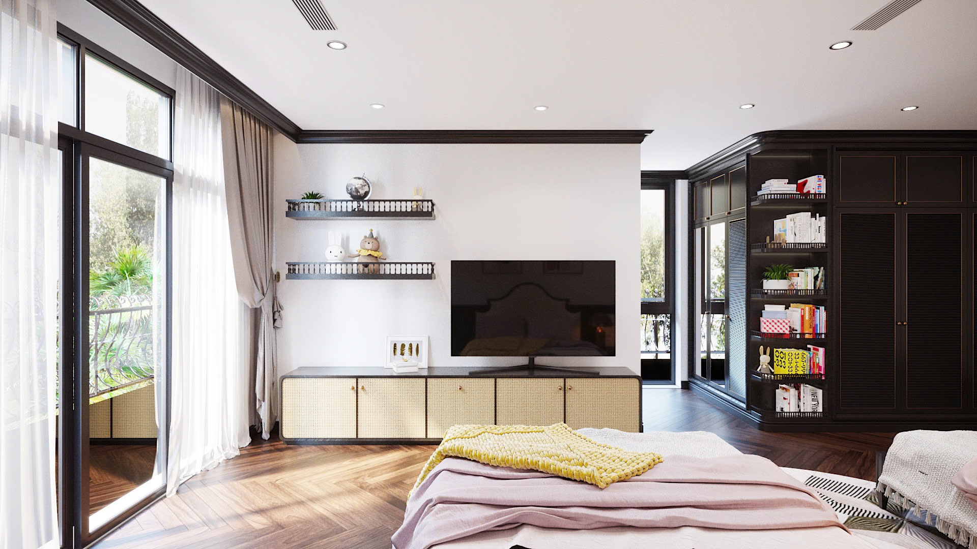 Khi thiết kế căn biệt thự đảo Ecopark theo phong cách này, các kiến trúc sư của Circle Home Design đã tỉ mỉ lựa chọn và phối hợp nhuần nhuyễn giữa các gam màu trung tính như vàng nhạt, kem, nâu pha trộn với các gam màu ấm nóng của xứ nhiệt đới như cam, đỏ… Họa tiết hoa mai, hoa sen và các vật dụng trang trí cùng không gian rộng mở gần gũi với thiên nhiên tạo nên tổng thể hài hòa về một ngôi nhà phảng phất nét cổ điển sang trọng nhưng vẫn năng động và tràn đầy sức sống.