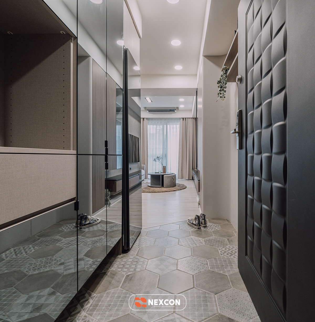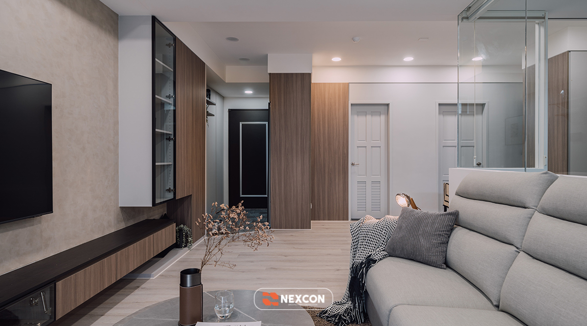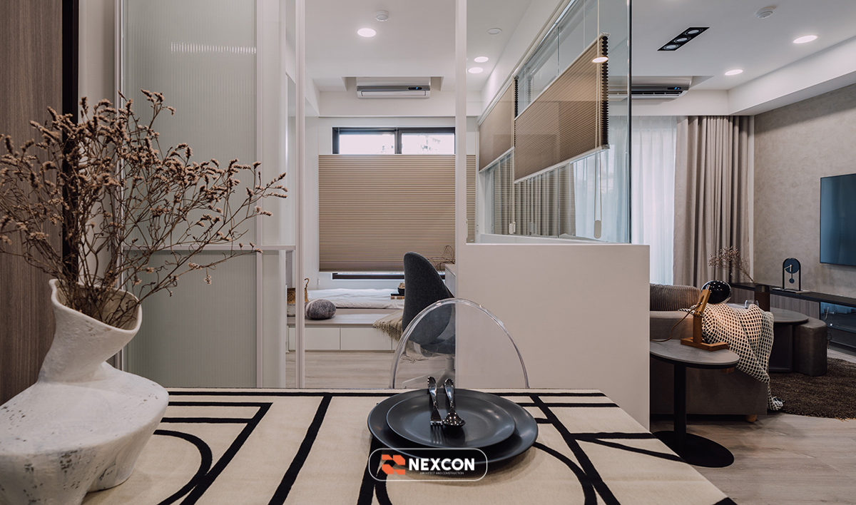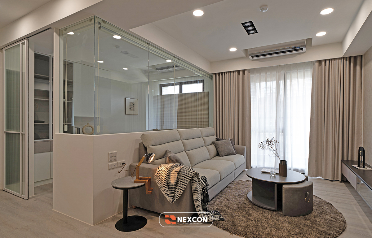 Nexcon giống như một người bạn thân , nó bộc lộ mong muốn yên tĩnh và thư giãn bên trong của chủ nhân trong nháy mắt, thông qua các trục kinh độ và vĩ độ đan xen với họa tiết màu xám và màu trà sữa, kết hợp với độ trong suốt và nhẹ nhàng của kính để tạo ra một môi trường gia đình lành mạnh và thoải mái.