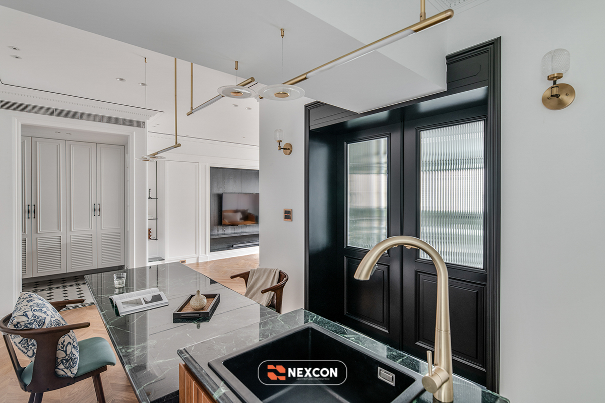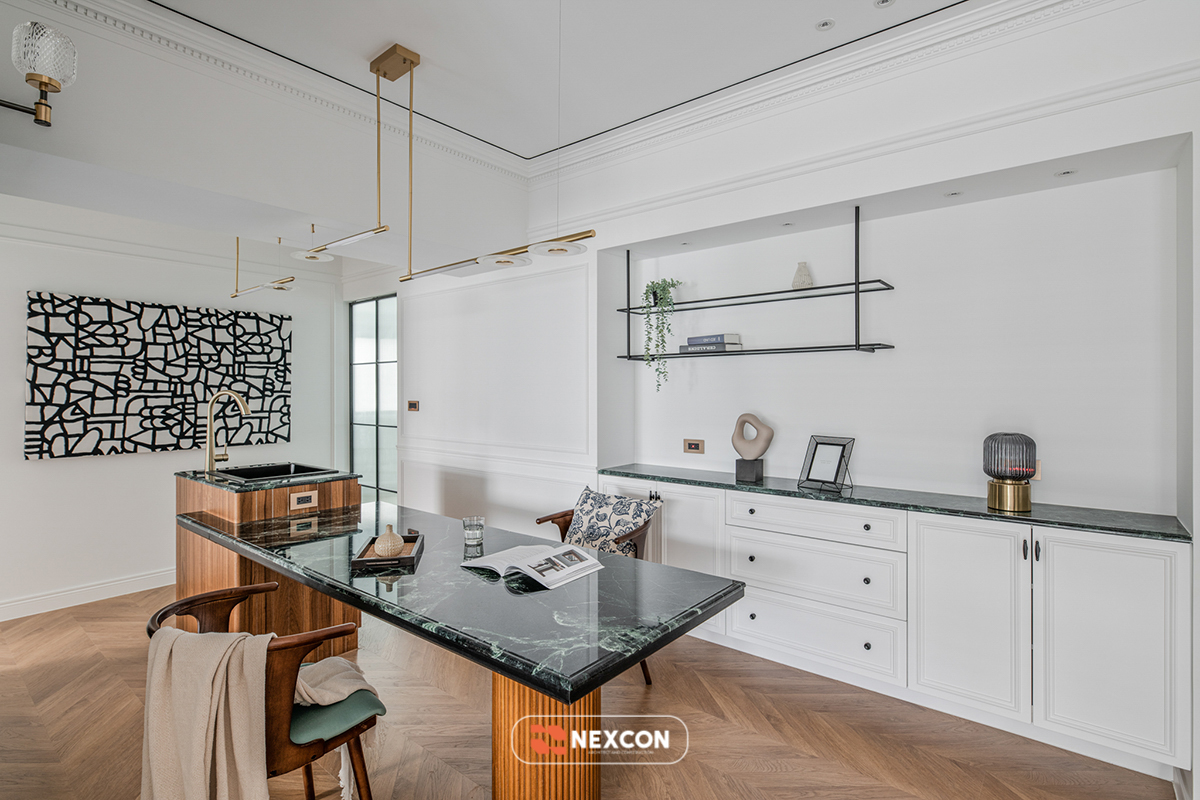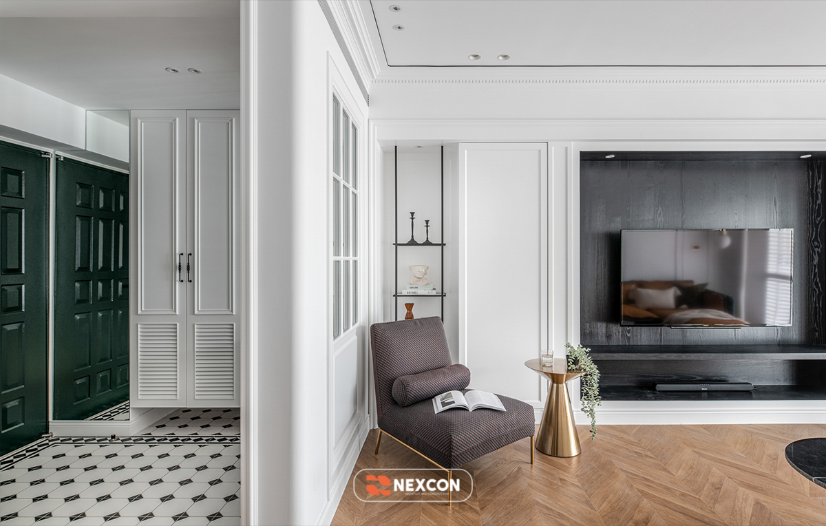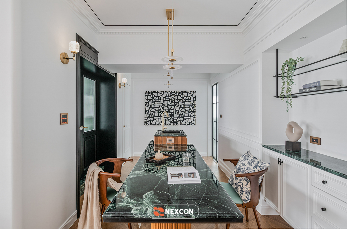 Trong lần cải tạo này, căn hộ ba phòng ngủ ban đầu được quy hoạch thành một phòng ngủ và một phòng khách trong một dinh thự kiểu khách sạn, giúp nâng cao cảm giác về không gian và sự độc lập của địa điểm, đồng thời phù hợp hơn với nhịp độ và cuộc sống hàng ngày. nhịp điệu của hai người.