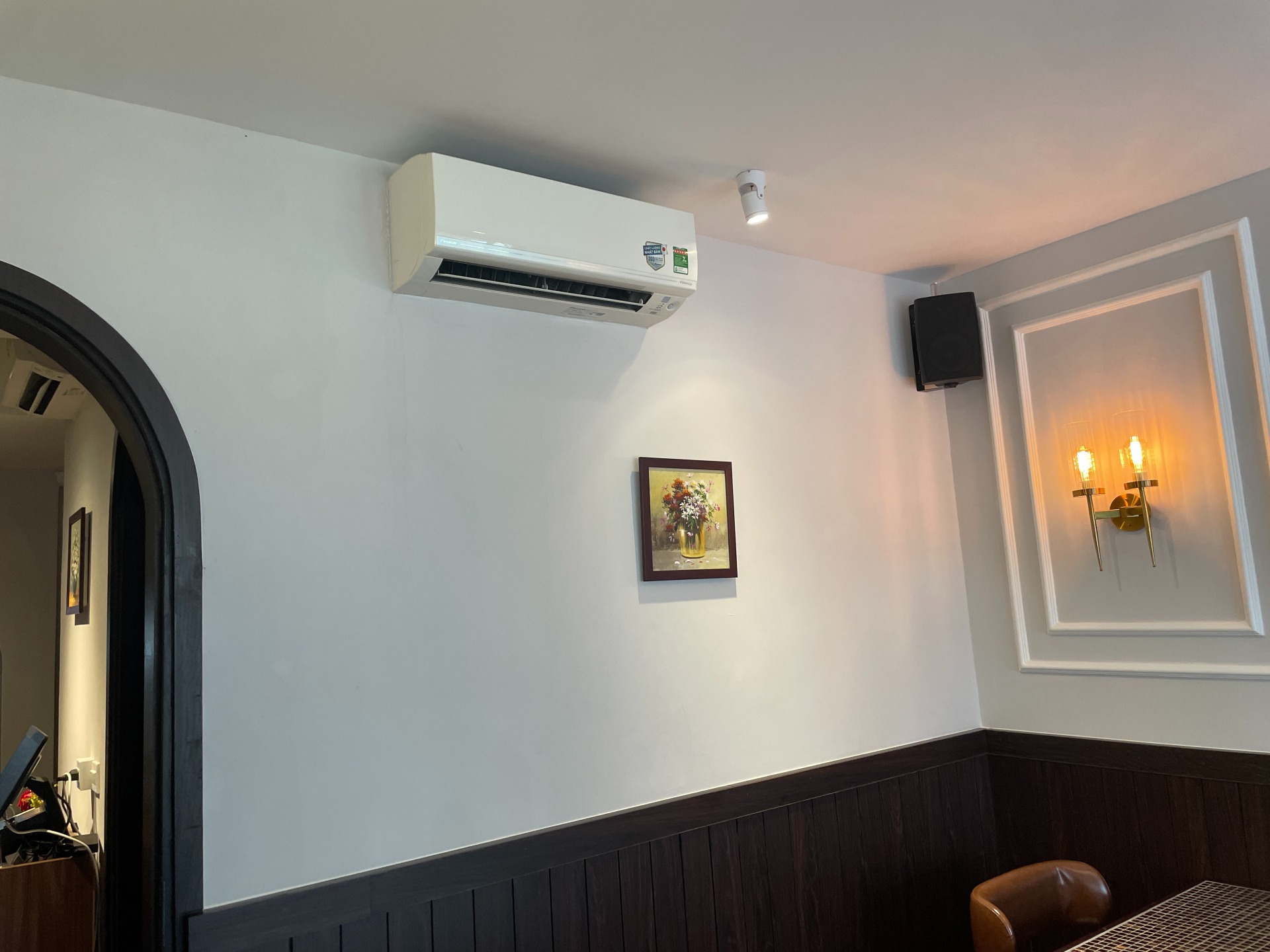 Công trình lắp đặt điều hòa cassette và điều hòa treo tường cho Nhà hàng Nhật Bản tại thành phố Hà Nội. Công trình là một tòa nhà 3 tầng với diện tích sàn sử dụng điều hòa mỗi tầng là khoảng 120m² với phong cách thiết kế hiện đại, không gian ấm cúng. Và để phù hợp với nhu cầu sử dụng theo từng tầng, khu vực cũng như đảm bảo tính thẩm mỹ của nhà hàng, chúng tôi đã nghiên cứu, tìm hiểu thật kỹ để làm sao đưa ra thiết kế tối ưu nhất, tiết kiện điện năng nhất cho khách hàng.