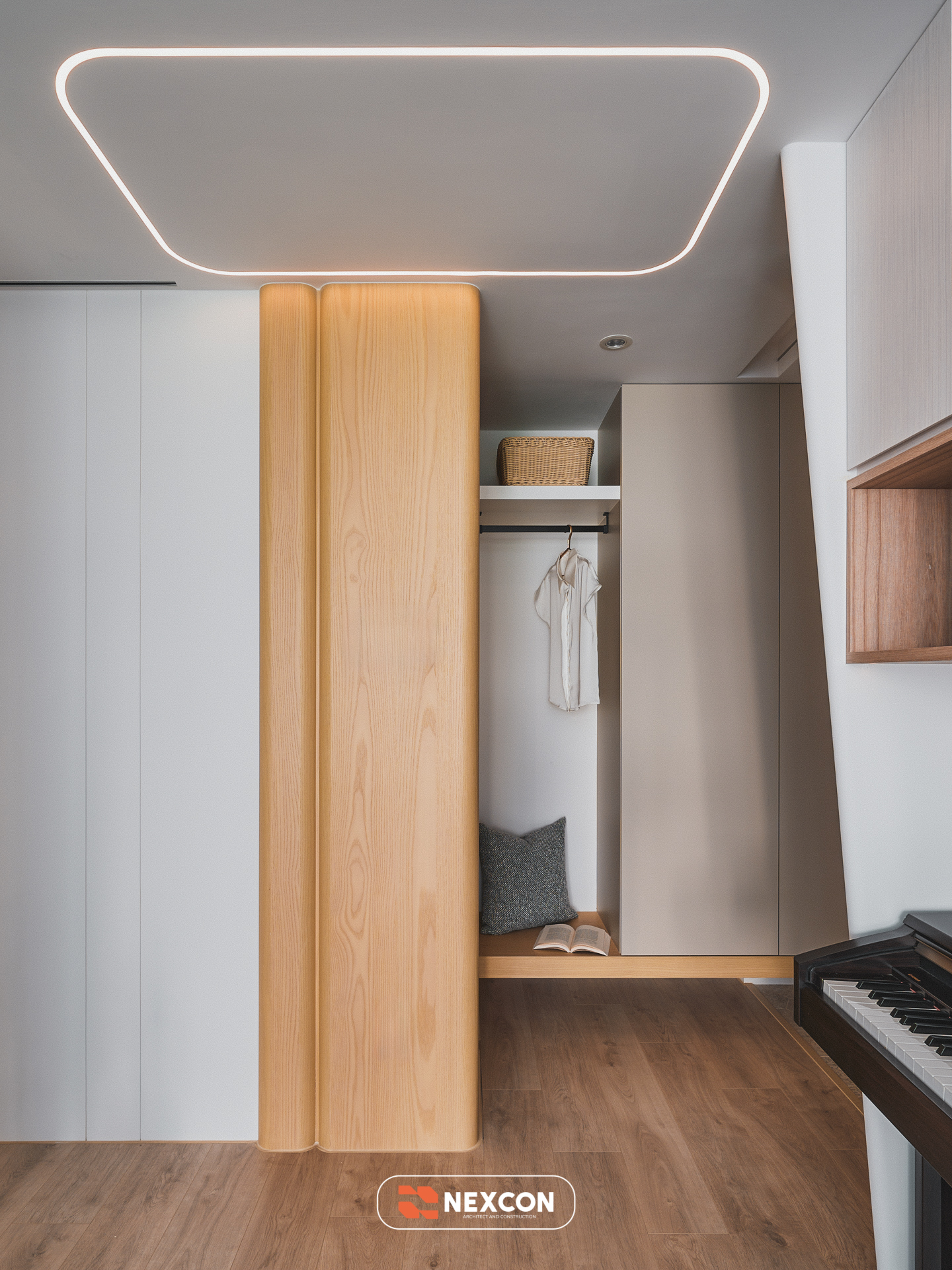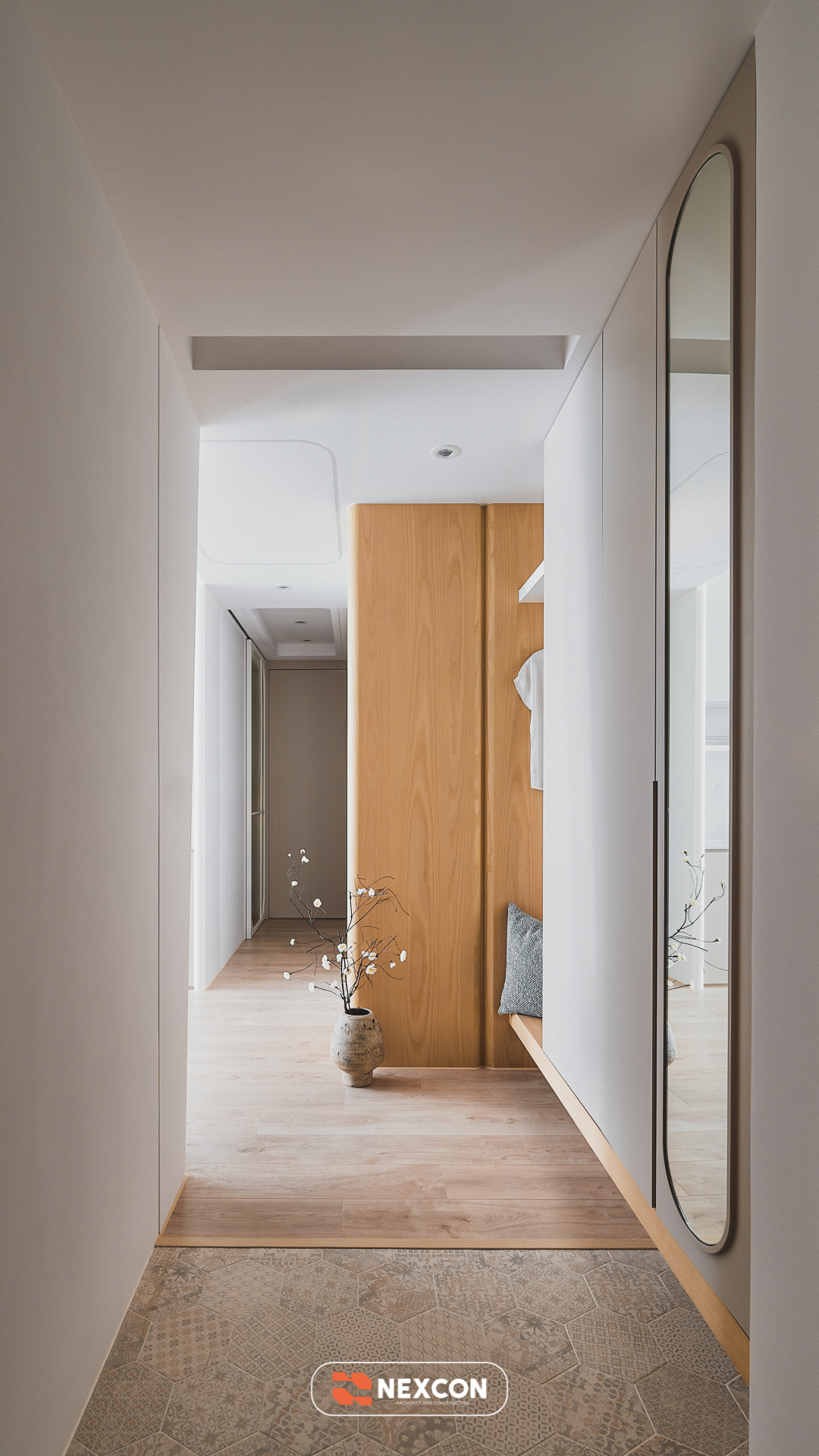 Ngôi nhà không chỉ là nơi ở, mà còn là một nơi để thư giãn và tìm lại bình yên. Kiến trúc hiện đại, tông màu gỗ và trắng làm cho không gian trở nên rộng rãi và thoải mái. Cửa sổ lớn cho phép ánh sáng tự nhiên tràn vào, tạo nên không gian sáng sủa và tươi mát.