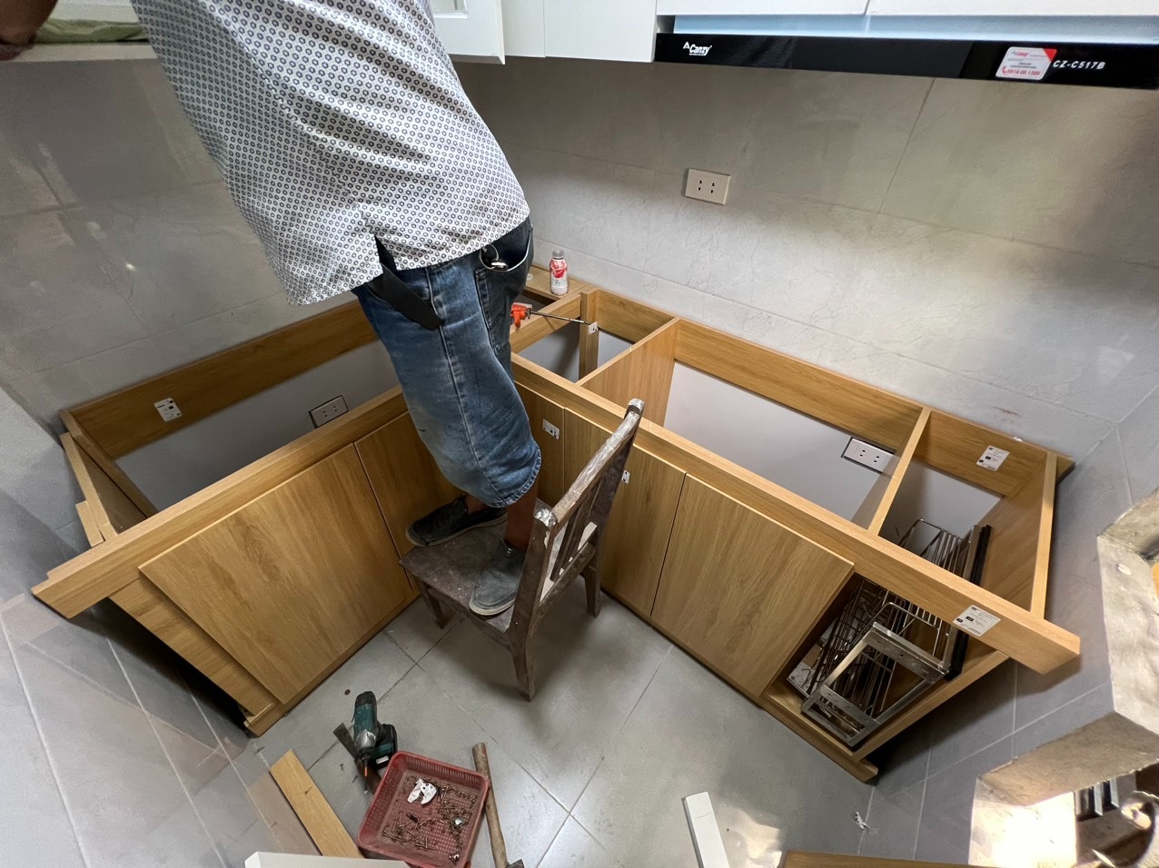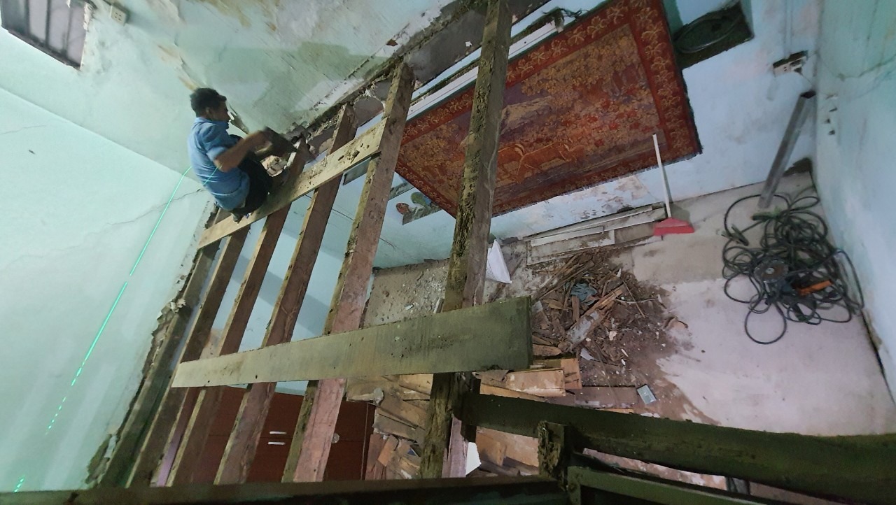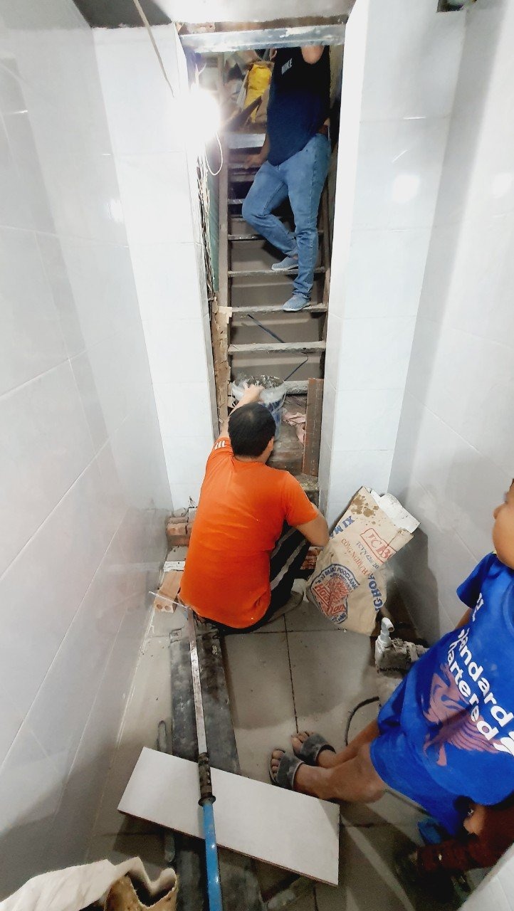 Với kinh nghiệm dày dặn làm các công trình nhà với diện tích nhỏ trên phố cổ, Minh Anh đã lên phương án và triển khai thi công các hạng mục cải tạo như mong muốn, trao đổi với chủ nhà: Làm lại cầu thang từ tầng 1 lên; làm lại sàn, chống thấm, ốp lát tường; sửa chữa, chống thấm, ốp lát mới nhà vệ sinh; đi lại điện nước; tủ bếp.