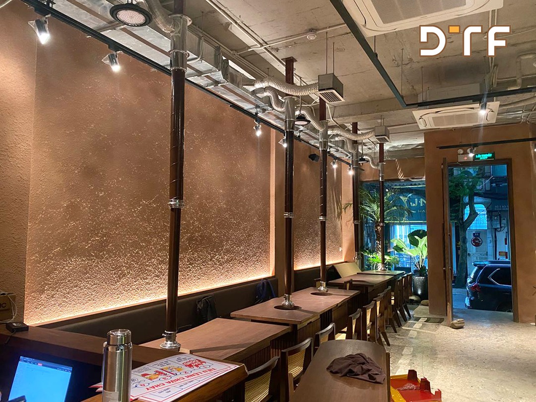 DTF Việt Nam với nhiều năm kinh nghiệm thi công chuỗi nhà hàng lẩu nướng hân hạnh là một phần của dự án này và mang lại không gian ẩm thực chuẩn Hàn cho mọi người. Cùng theo dõi những hình ảnh thi công tại nhà hàng Kkul BBQ Bùi Thị Xuân