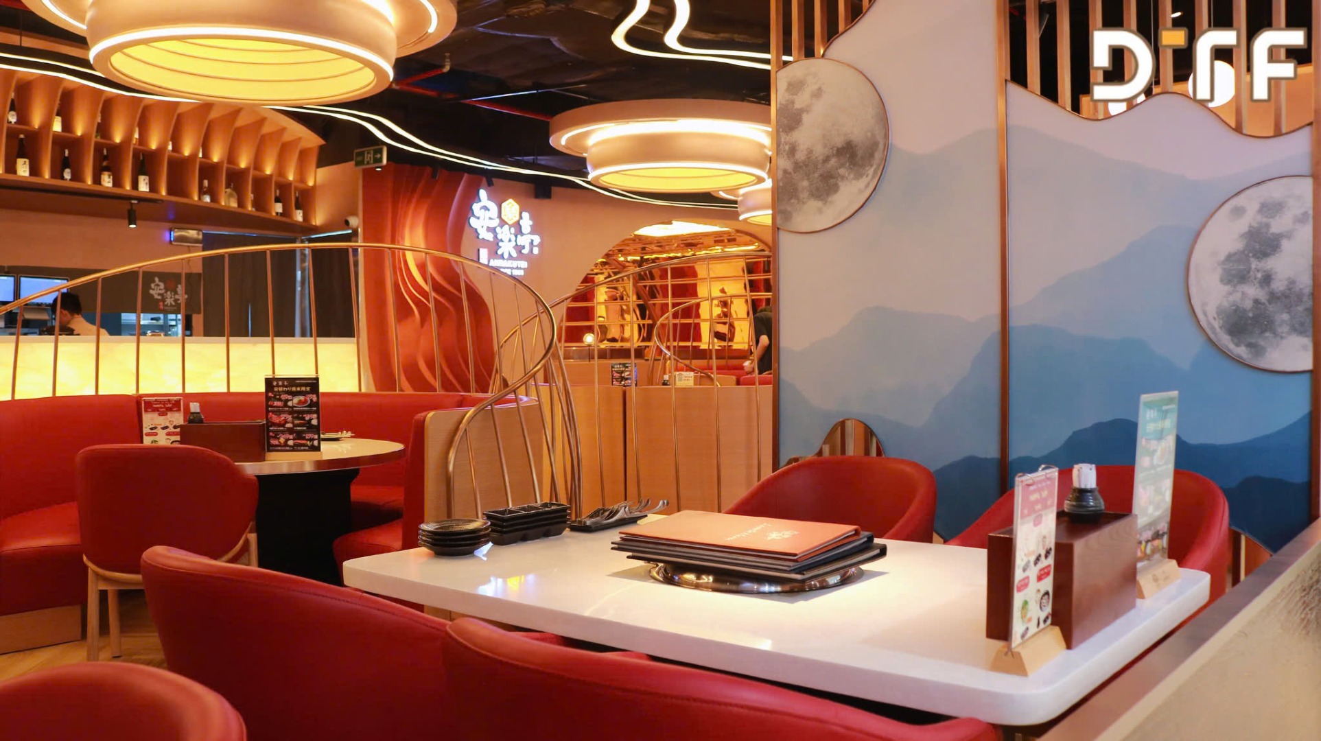 + Biểu tượng “Trăng tròn” – gợi nhớ đến lễ hội Ngắm trăng (Otsukimi) trong văn hóa Nhật Bản, mang ý nghĩa đoàn viên và thịnh vượng, được bố trí tinh tế từng vị trí, giúp thực khách dễ dàng cảm nhận được nhịp sống của Nhật Bản trong khi thưởng thức món ăn.