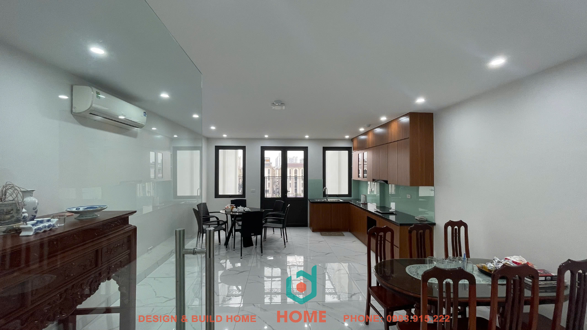 -Thi công toàn bộ phần thô, hoàn thiện xây trát ốp lát, sơn bả, trần thạch cao, cửa nhôm kính, thang máy, thiết bị vật tư điện nước, điều hòa;