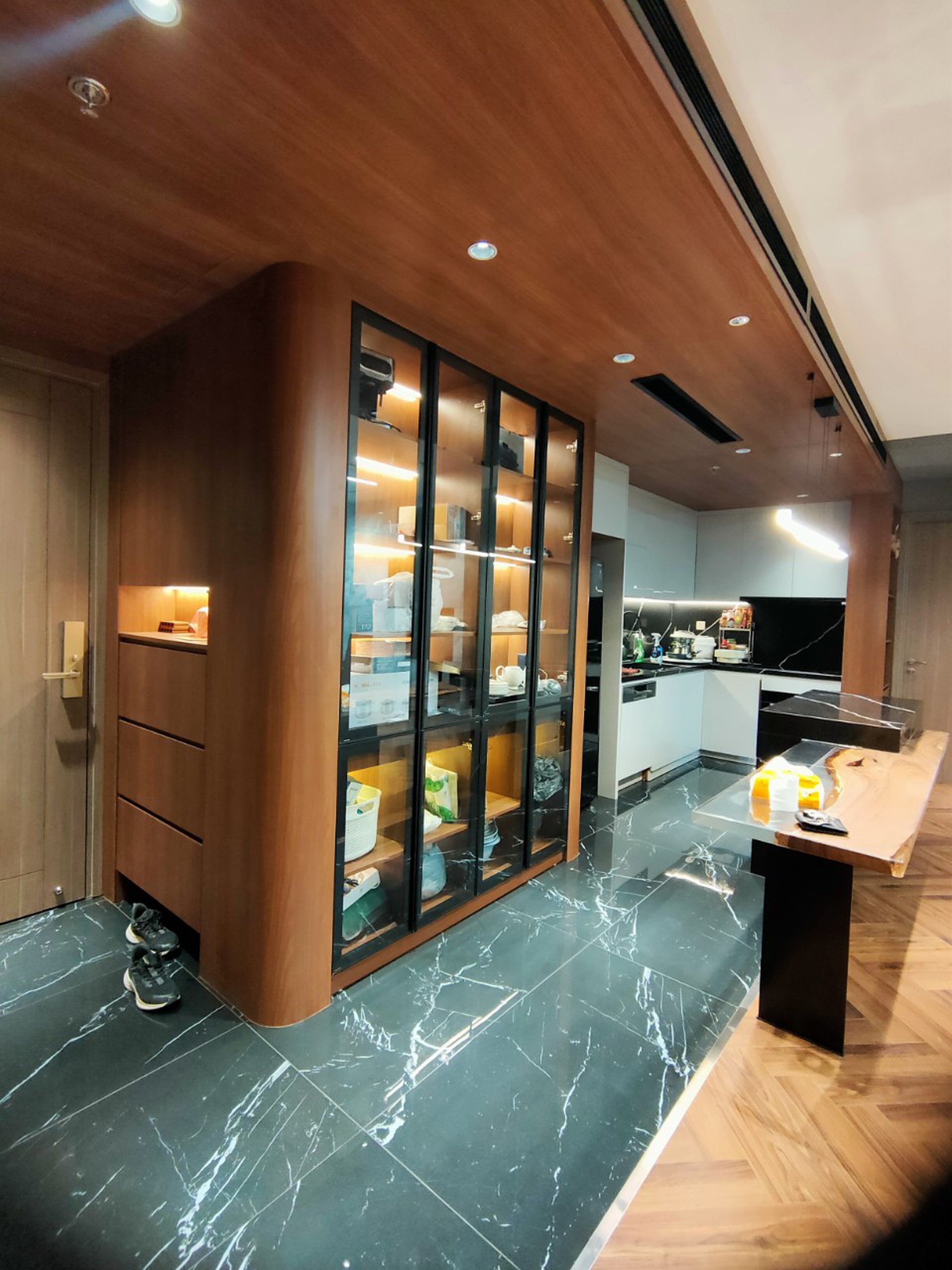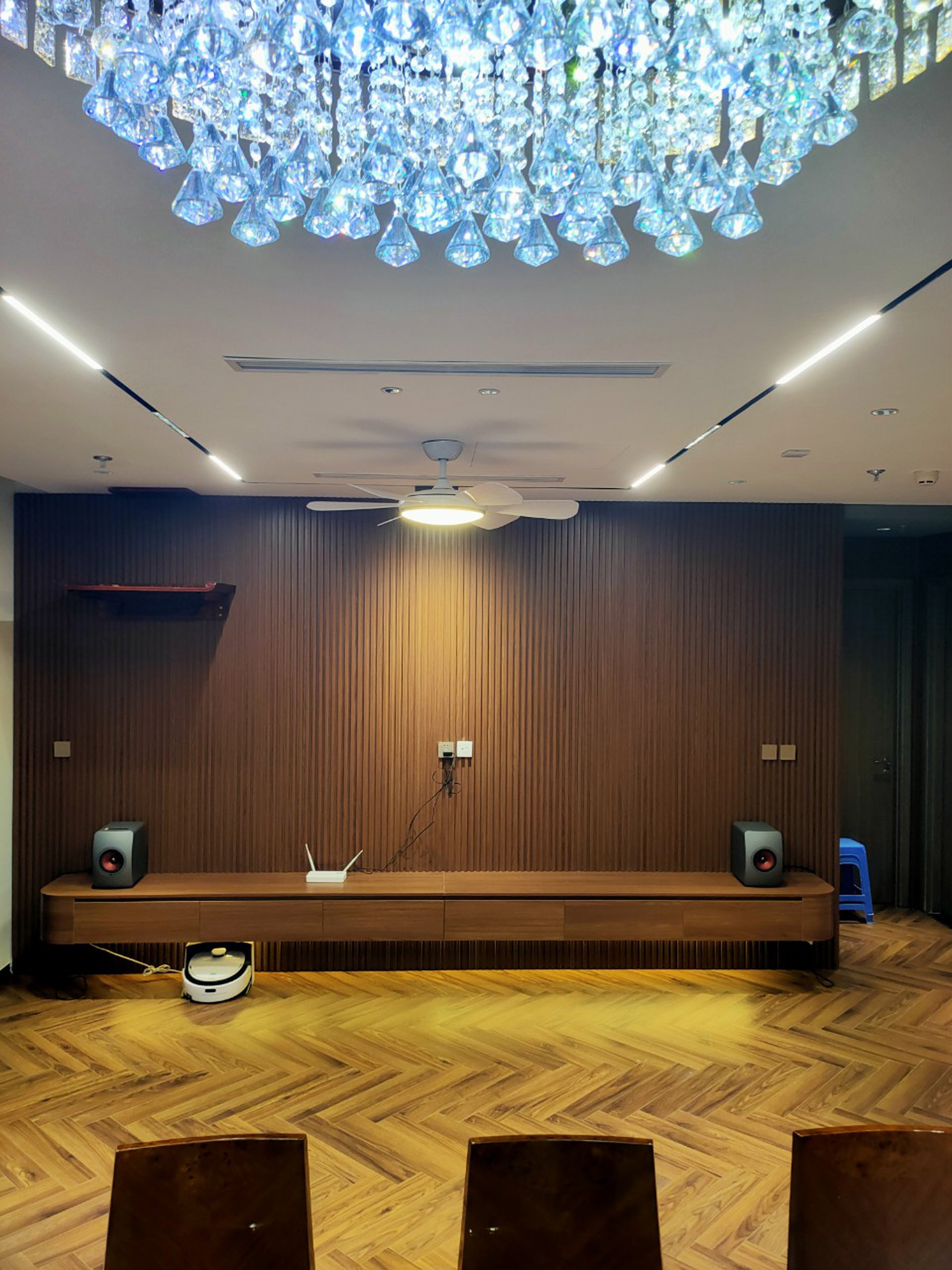 Căn hộ được Thiết kế mang hơi hướng hiện đại về mặt công năng, nhưng vật liệu được sử dụng chủ yếu là tông gỗ hoài cổ theo đúng gu và sở thích của chủ nhà. Những vật liệu, phụ kiên sử dụng để hoàn thiện nhà đều ở mức khá tốt. Công trình đưuọc hoàn thiện và nhận được sự hài lòng của không chỉ chủ nhà mà còn của bạn bè và người thân gia chủ, Sau công trình này Minh Anh còn được chính Ban Quan lý dự án tòa nhà giới thiệu thêm cho 01 khách mua nhà để tham gia báo giá chào thầu.