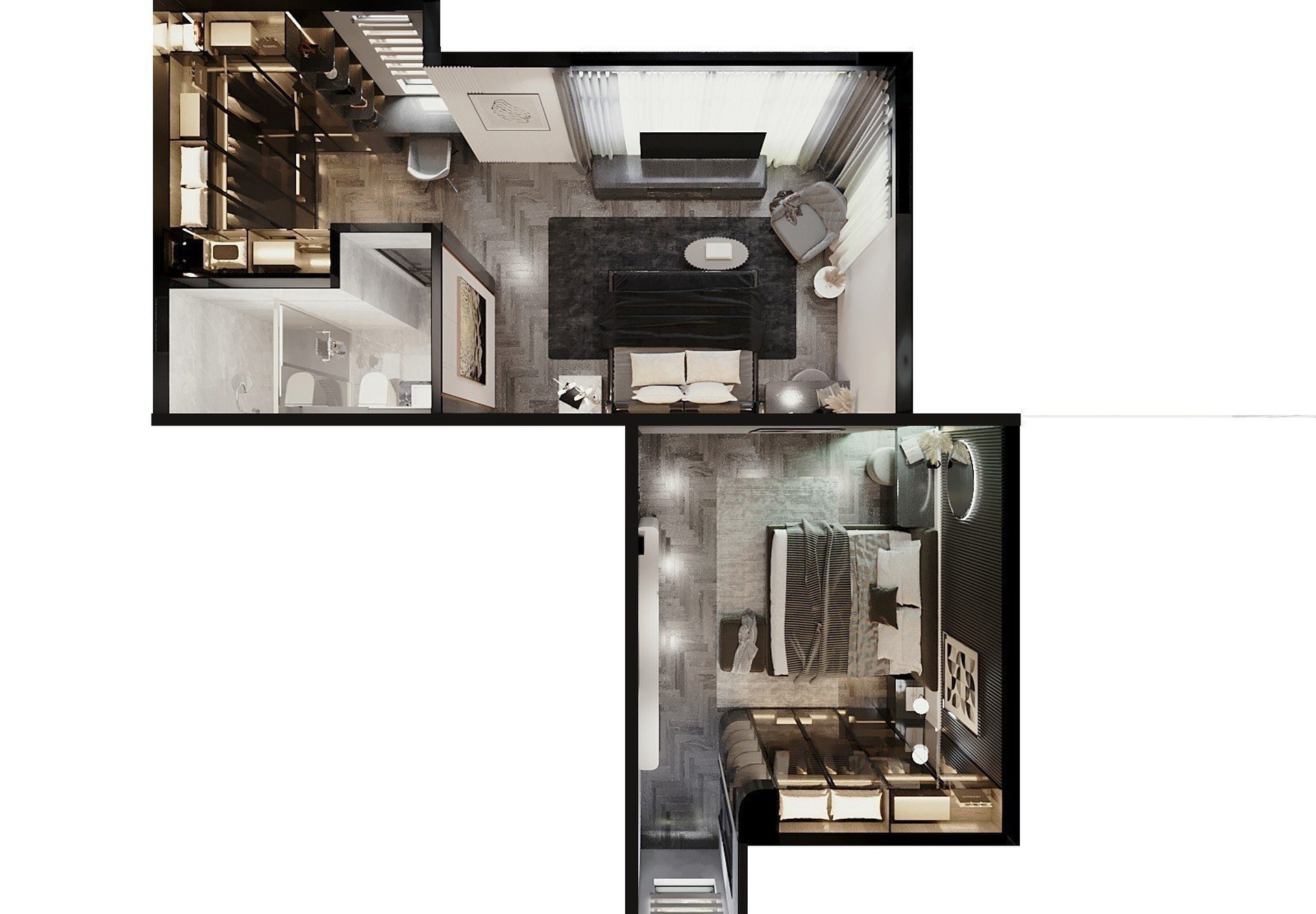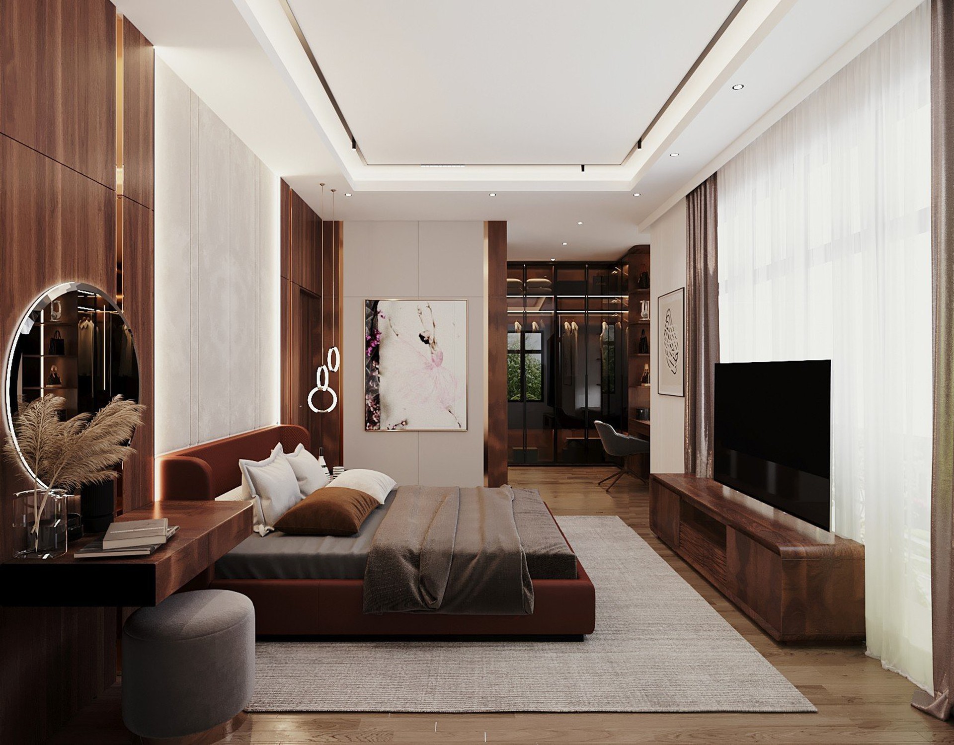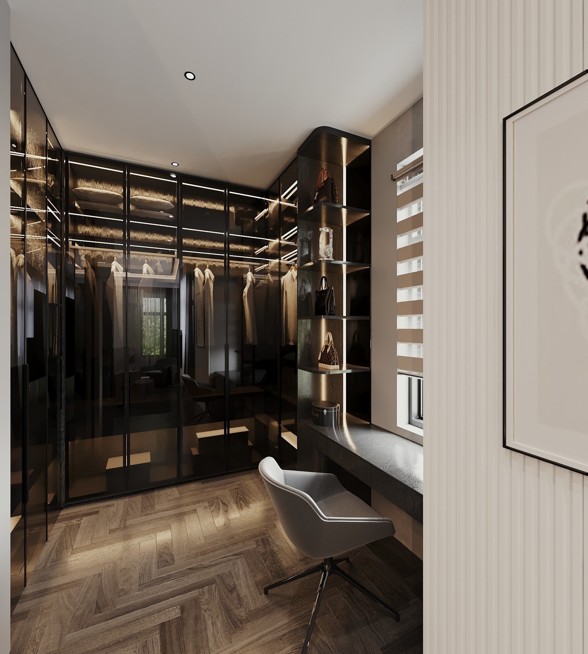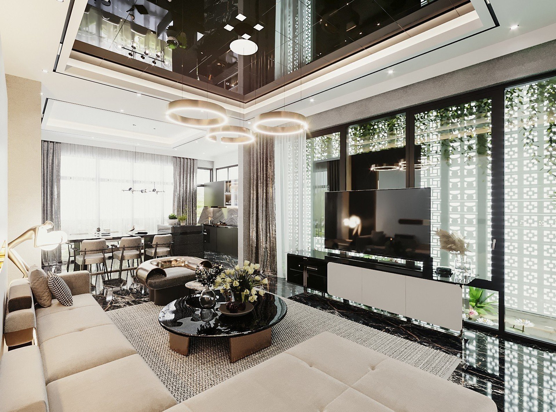 Công trình sử dụng Gỗ tự nhiên với tông màu đen làm chủ đạo, kết hợp với gỗ Công nghiệp MDF Thái Lan