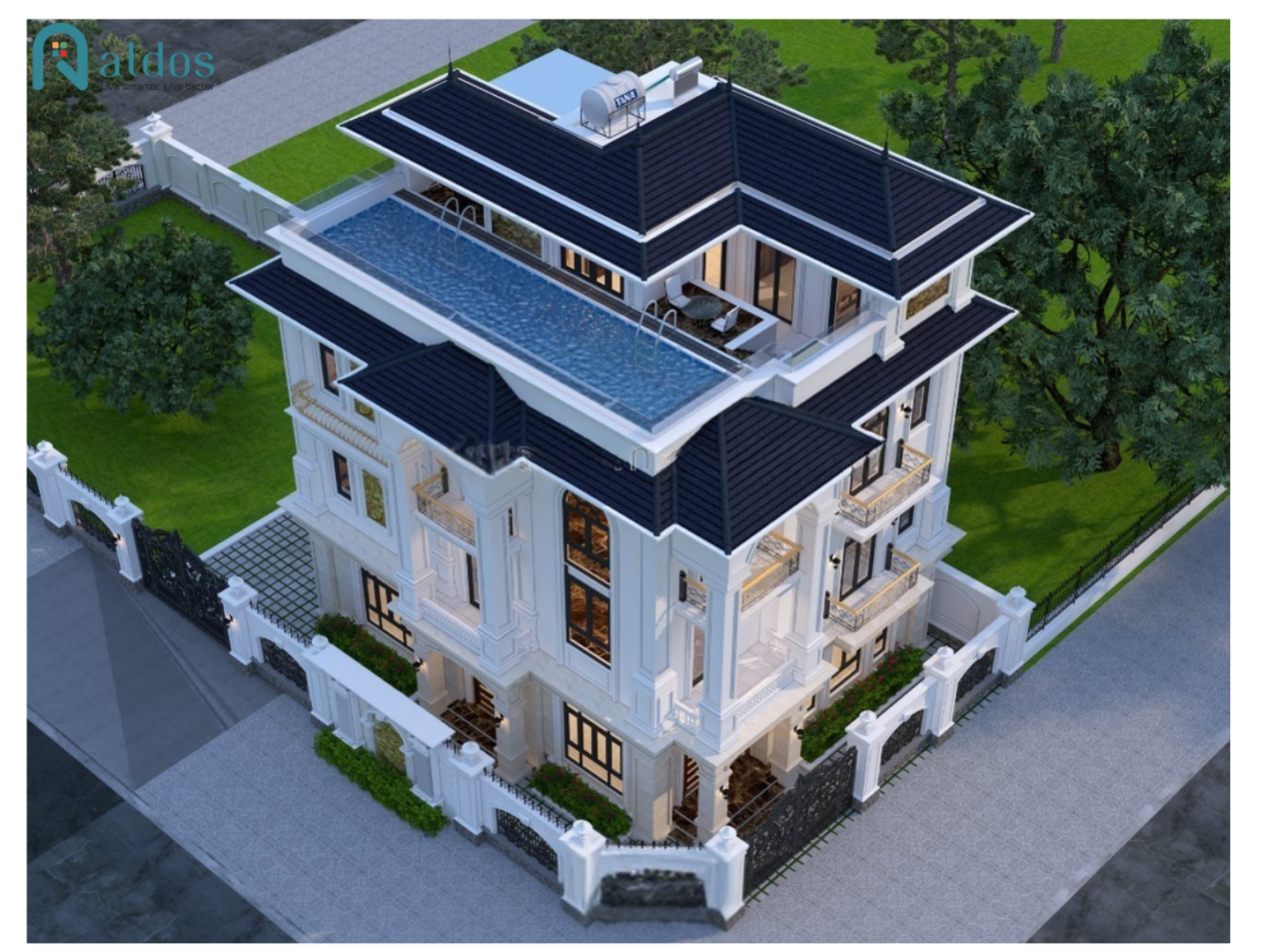 - Giải pháp Chiếu Sáng Thông Minh toàn bộ nhà với hầu hết là Dim DALI, kết hợp các line bật/tắt ở sân vườn, hồ bơi