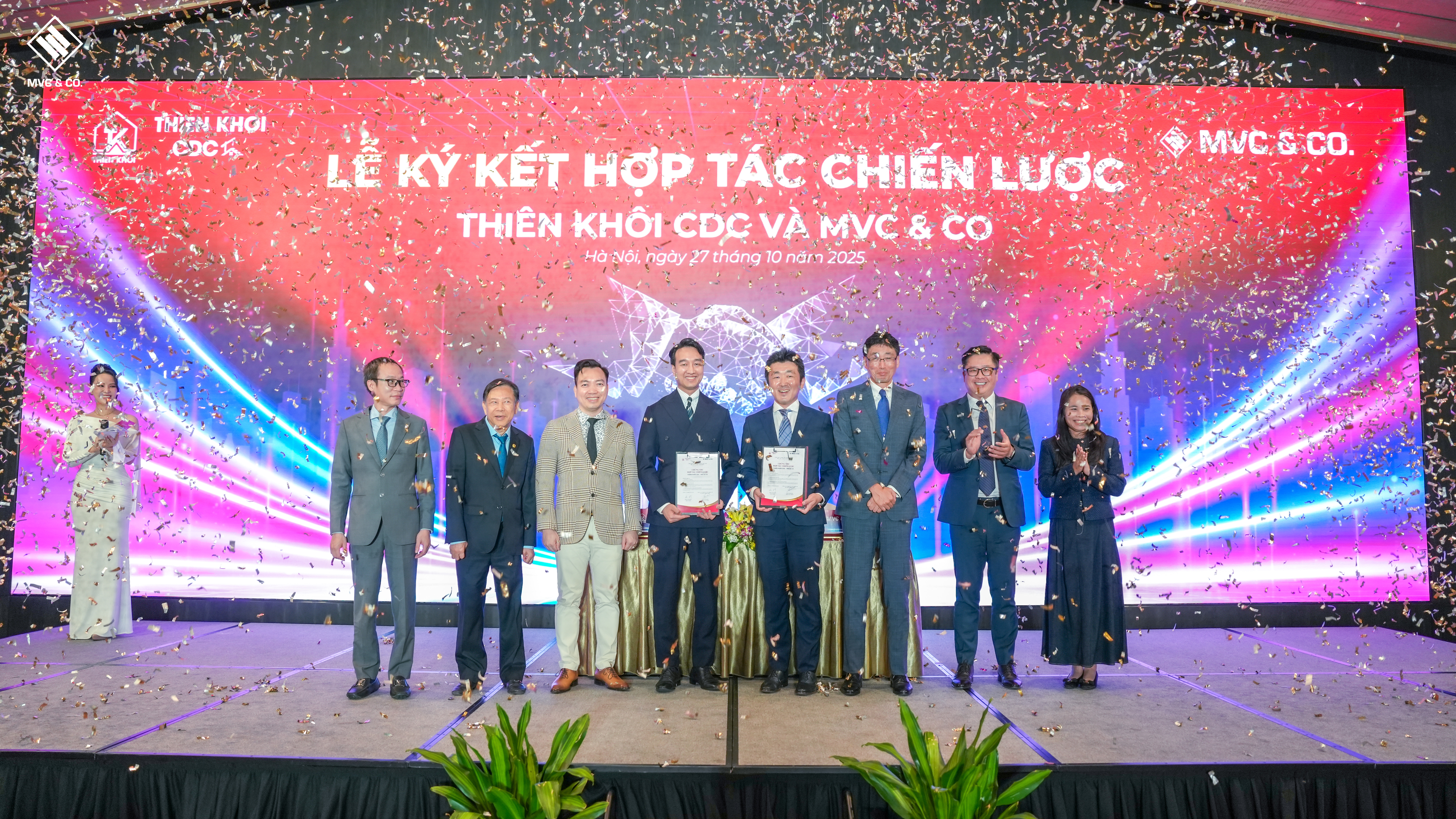 [TP. Hà Nội, ngày 27/10/2025] Lễ ký kết hợp tác chiến lược giữa Công ty Cổ phần Tư vấn Thiết kế Xây dựng Thiên Khôi (Thiên Khôi CDC) và Công ty TNHH MVC & CO đã diễn ra trang trọng tại Khách sạn Pan Pacific, chính thức mở ra một chương mới trong mối quan hệ đối tác toàn diện, hướng tới việc kiến tạo một hệ sinh thái xây dựng chất lượng cao và minh bạch tại Việt Nam.